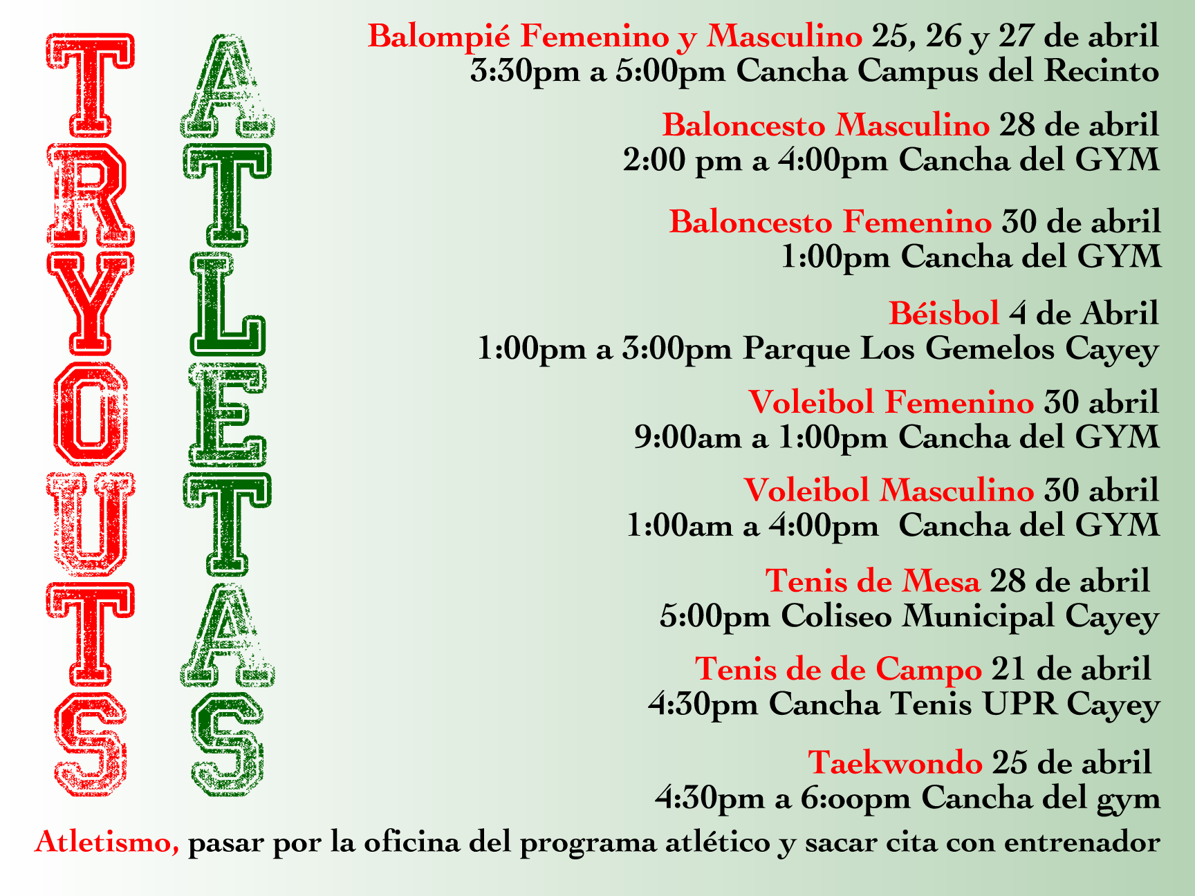 Atletas de la UPR Cayey aviso importante sobre los Tryouts