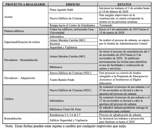 Actualmente se están llevando a cabo varios proyectos que impactan a nuestro recinto. Se están realizando los